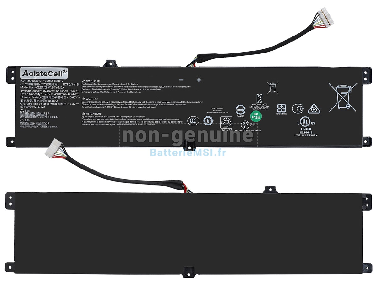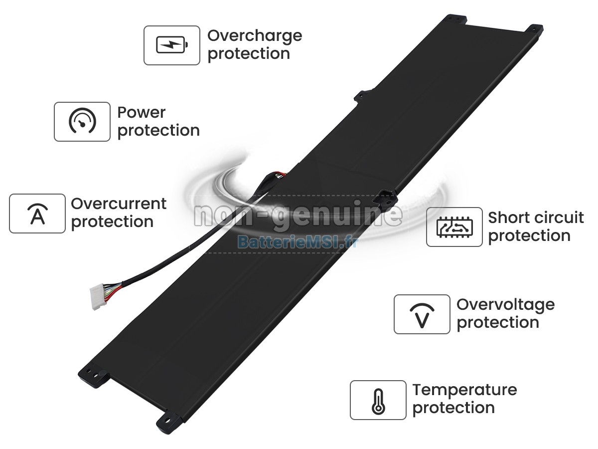Toutes les batterie vendues sur BatterieMSI.fr sont des pièces de rechange. BatterieMSI.fr n'est affilié à aucun des fabricants d'origine. Toutes les marques déposées ou noms de modèles répertoriés ci-dessus sont identifiés uniquement à des fins de compatibilité.